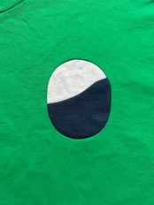 既製品のTシャツを切り抜いて、パッチワークを縫い合わせました。